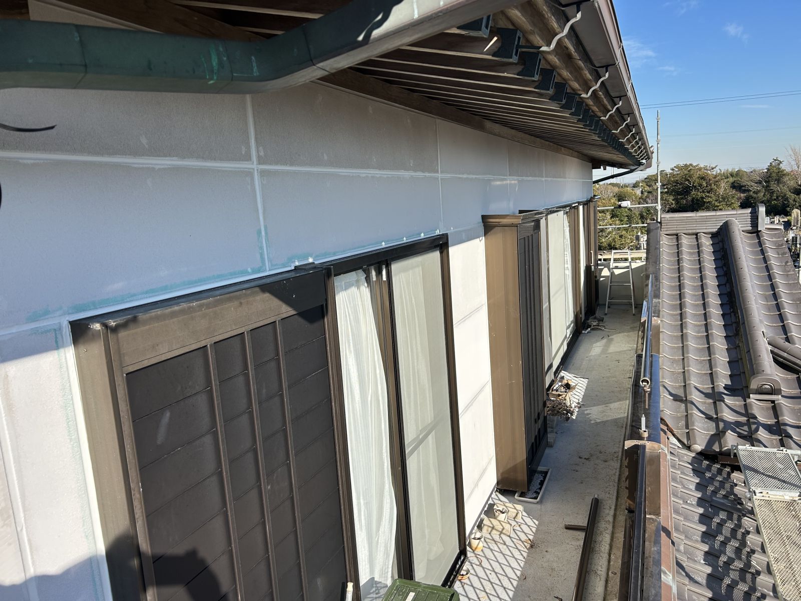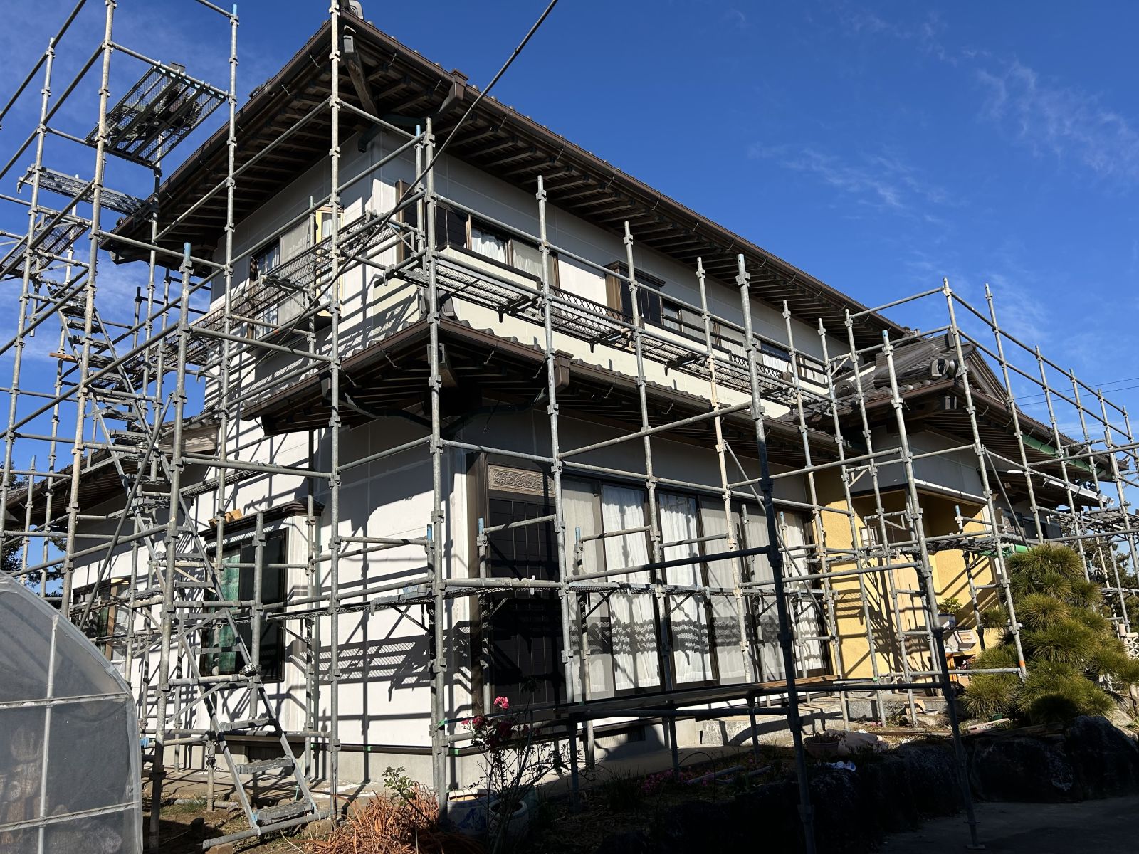 地元大工さんによるALC外壁の張り替え工事後、当社がジョリパットによる意匠仕上げを担当しました。